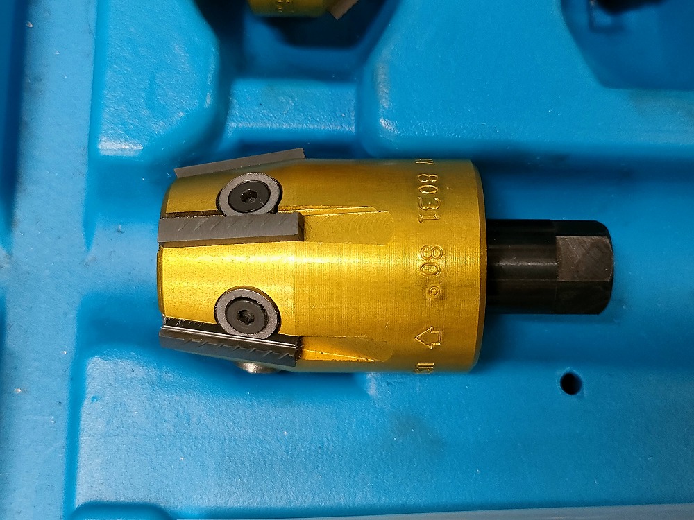 珍しい80度カッター。主にインテークポートの内径拡大用。コイツで大まかに拡大した後、リューターで仕上げると手間とリスクが減ります。コイツはB18CとかK20A用のサイズ。5枚刃なので安定して削れます。75度と併用すると最高です。