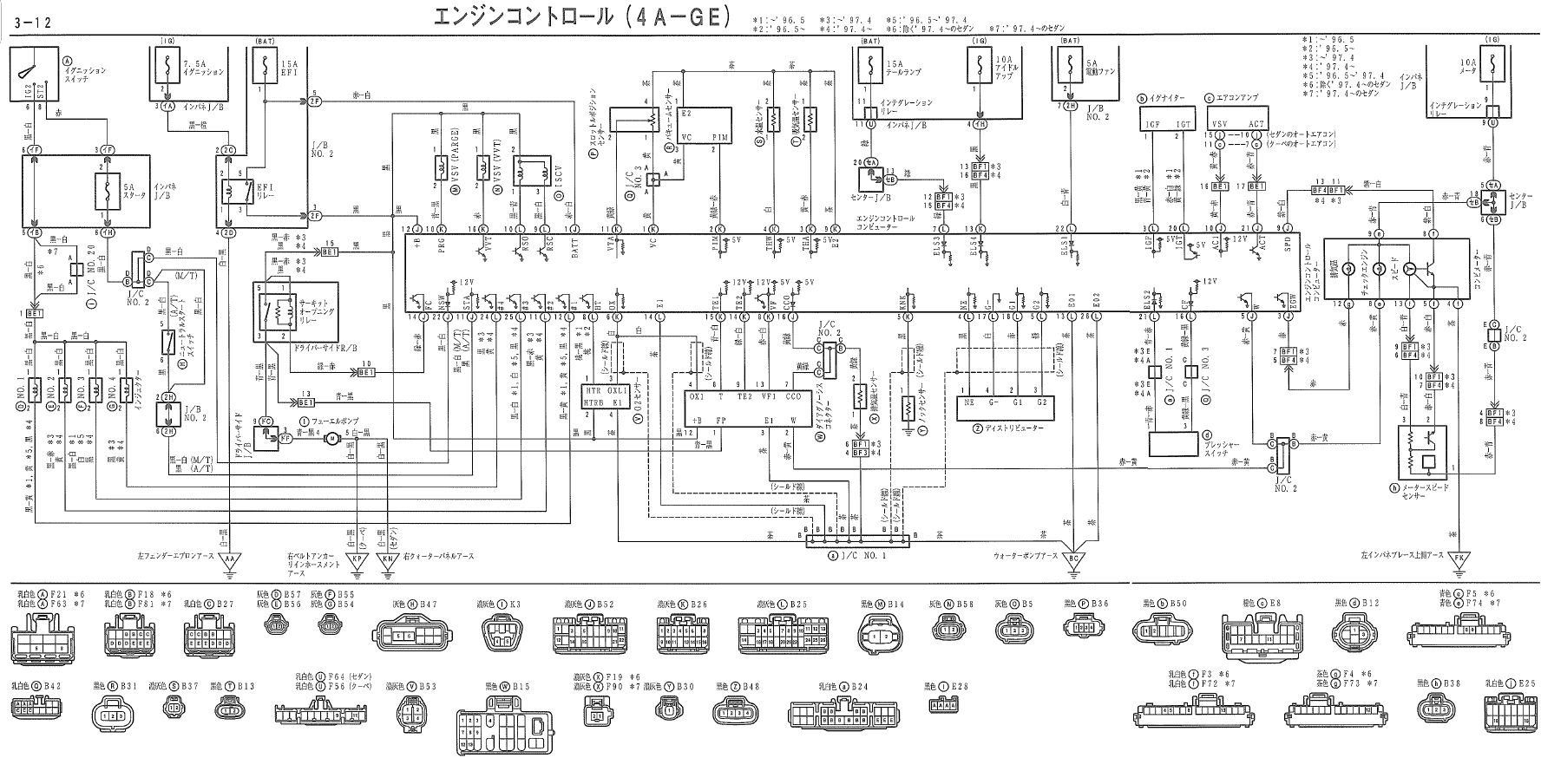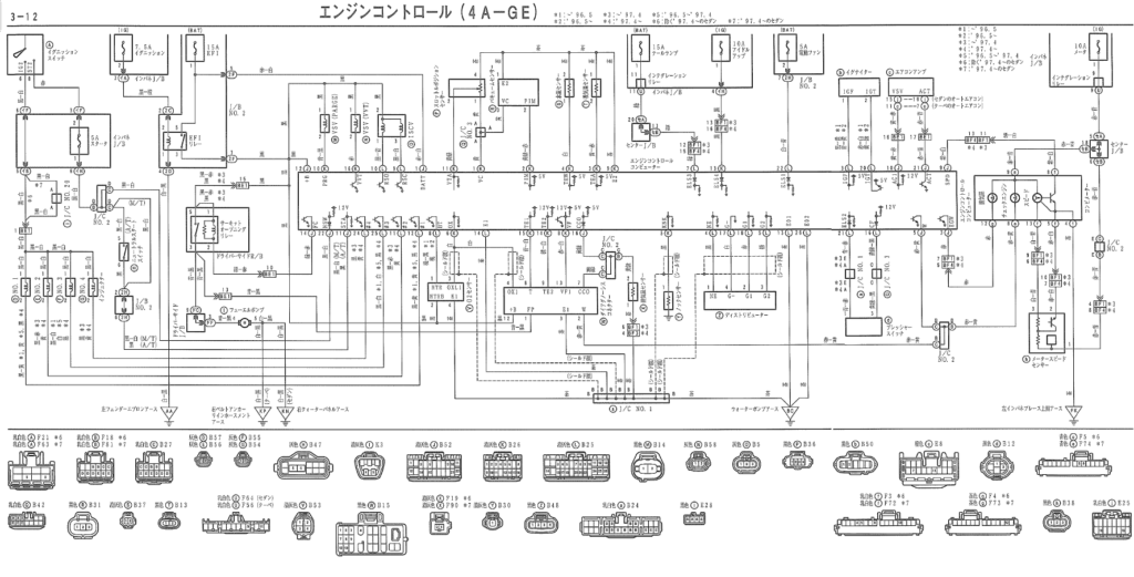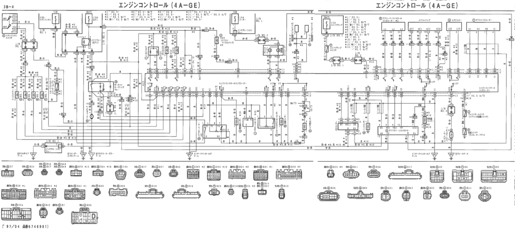 作業中にトラブルシューティングの一環でECUの配線図無いかとググってみたものの見つからず。そういや変態カローラ用に整備書CD持ってたわ。という訳で