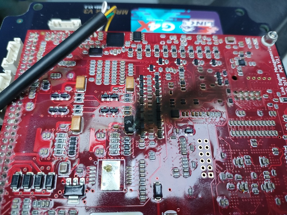 AEMの空燃比計をCAN接続するためにECUケースを開けたところ何かが真っ黒に焼けていました。