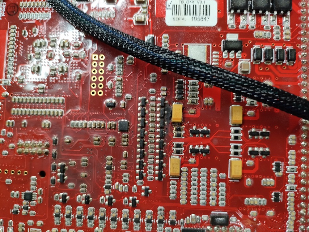 周辺を点検しつつ、清掃、部品交換。表面実装でも大き目の素子だと楽勝ですね。基盤のパターンや他の素子の破損は無さそうでした。