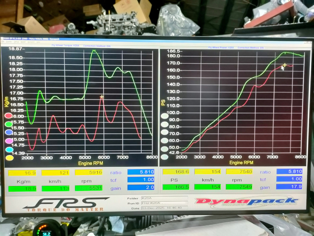 Day1の結果。とりあえず18馬力程向上。翌日もう少し伸びました。