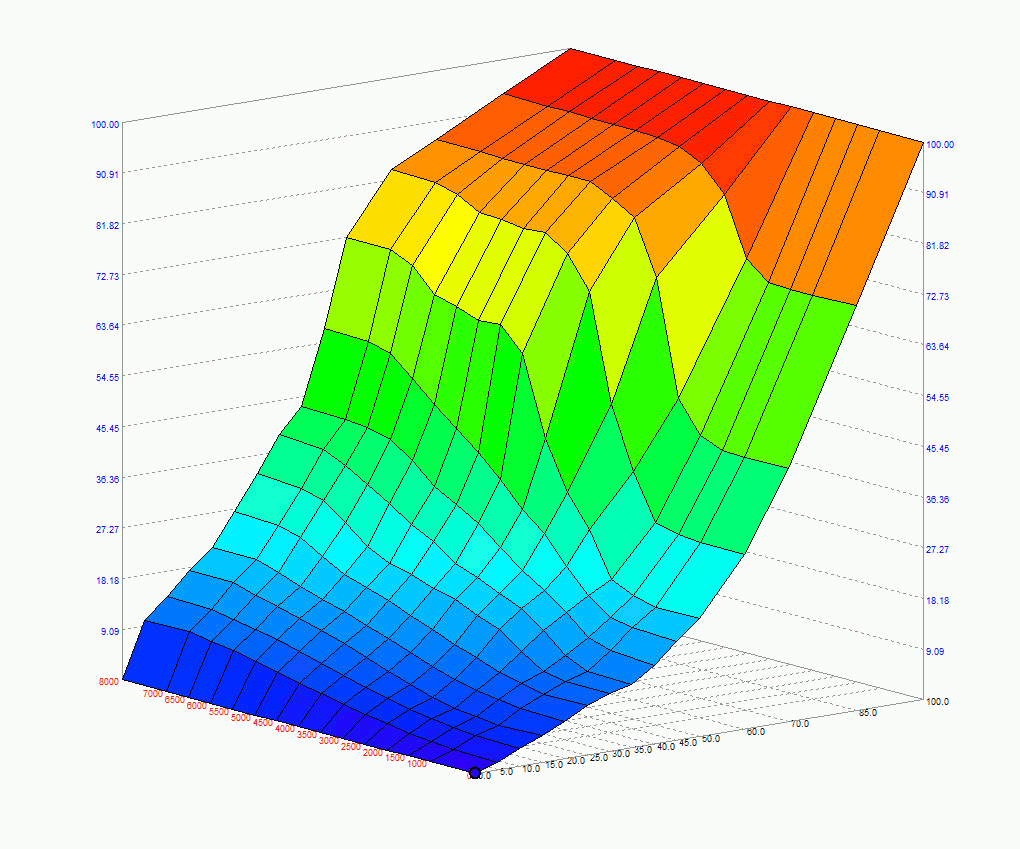 仕上げに試走して違和感を感じたスロットル開度マップを修正。主な修正箇所は中~高回転でアクセルを踏んだ瞬間のドン付き感を無くし、スムーズにトルクが立ち上がるよう変更、中速以上でペダル開度50%以降のゲインが乏しかったのでリニア寄りに変更。全域を違和感なく均して完成。試走でも違和感なし、運転しやすくなりました。
