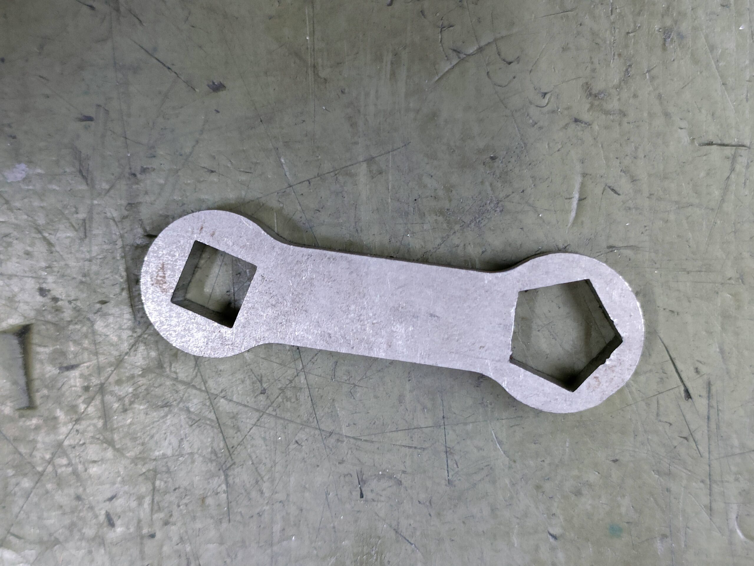 スチール製、表面処理無しなので、錆びないよう取り扱って下さい。